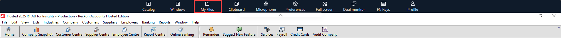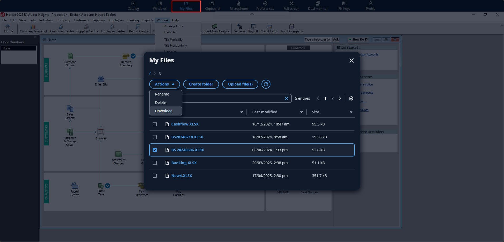 - Once logged into Reckon Accounts Hosted, click on My Files from the toolbar and select the Q folder