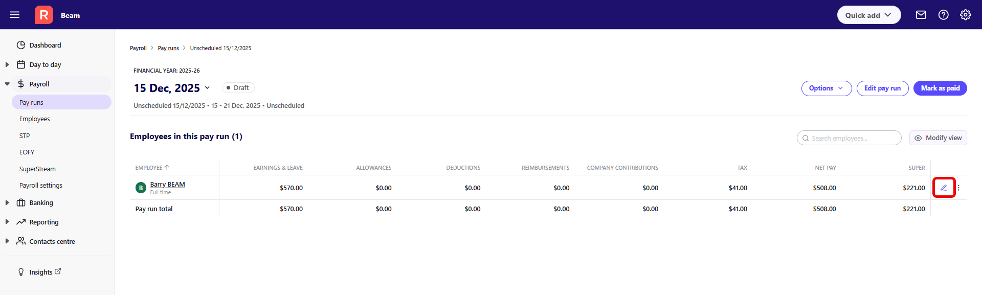 - Click on the pay run you wish to edit.
