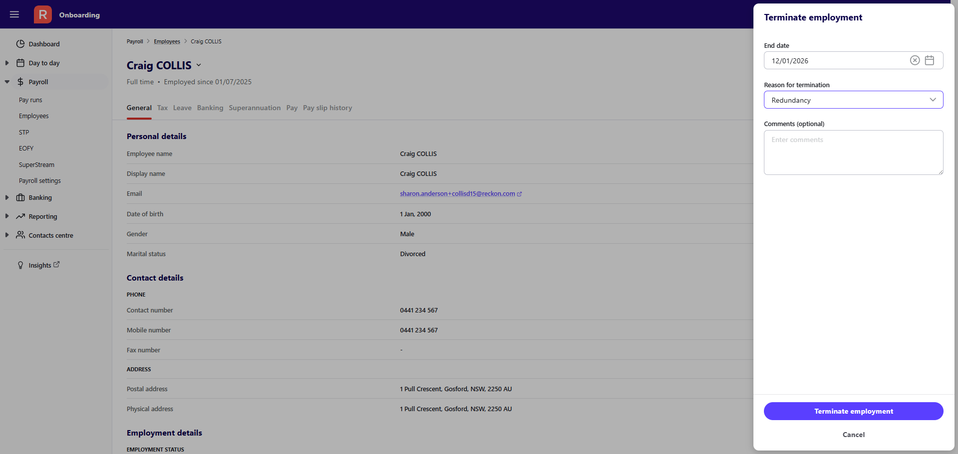 Add and edit an employee in Reckon One payroll