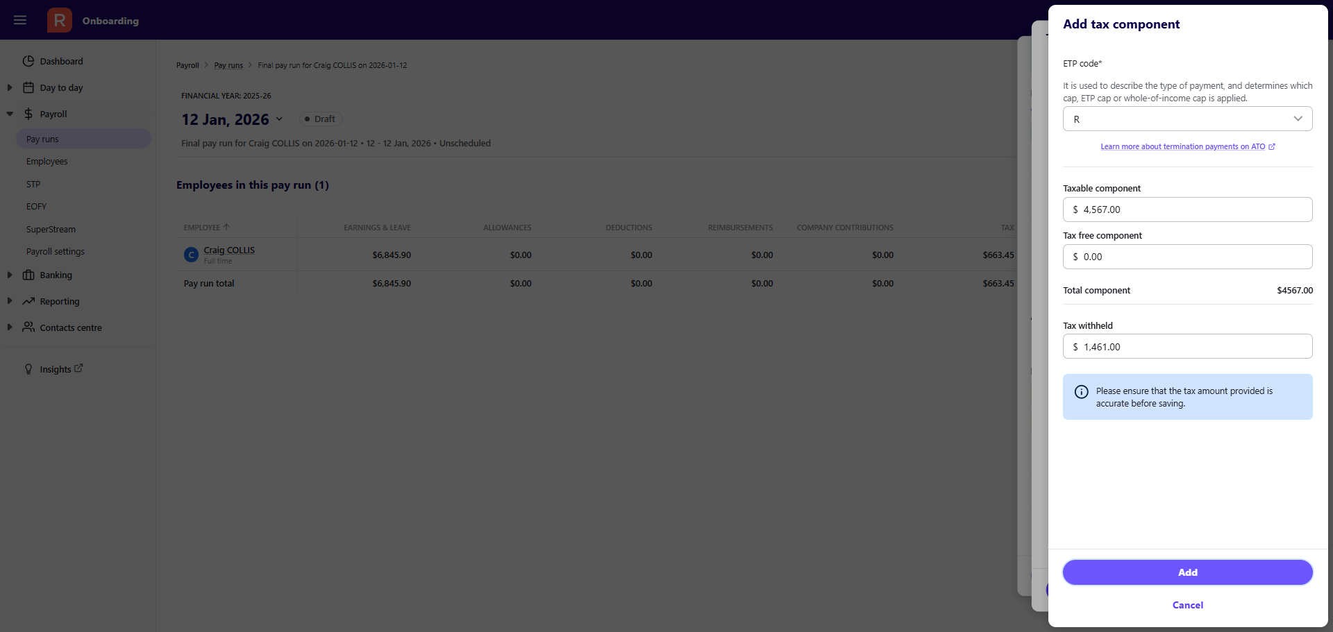 Learn how to process an Eligible Termination Payment (ETP) in a single pay run in Reckon One, ensuring accurate reporting to the ATO through your STP submission.