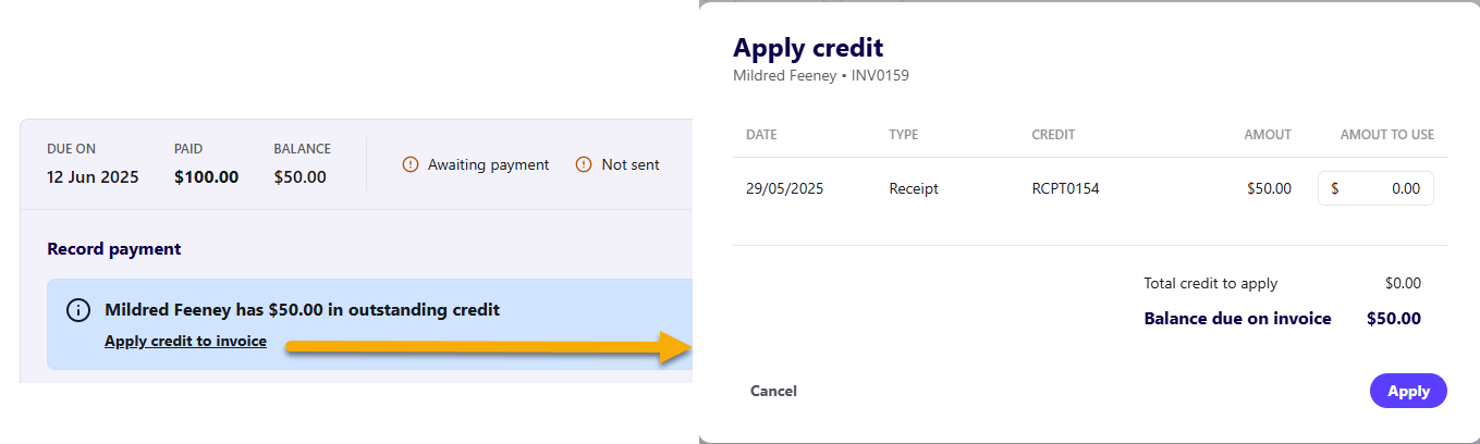 Learn how to record payments and apply credits to customer invoices in Reckon One.