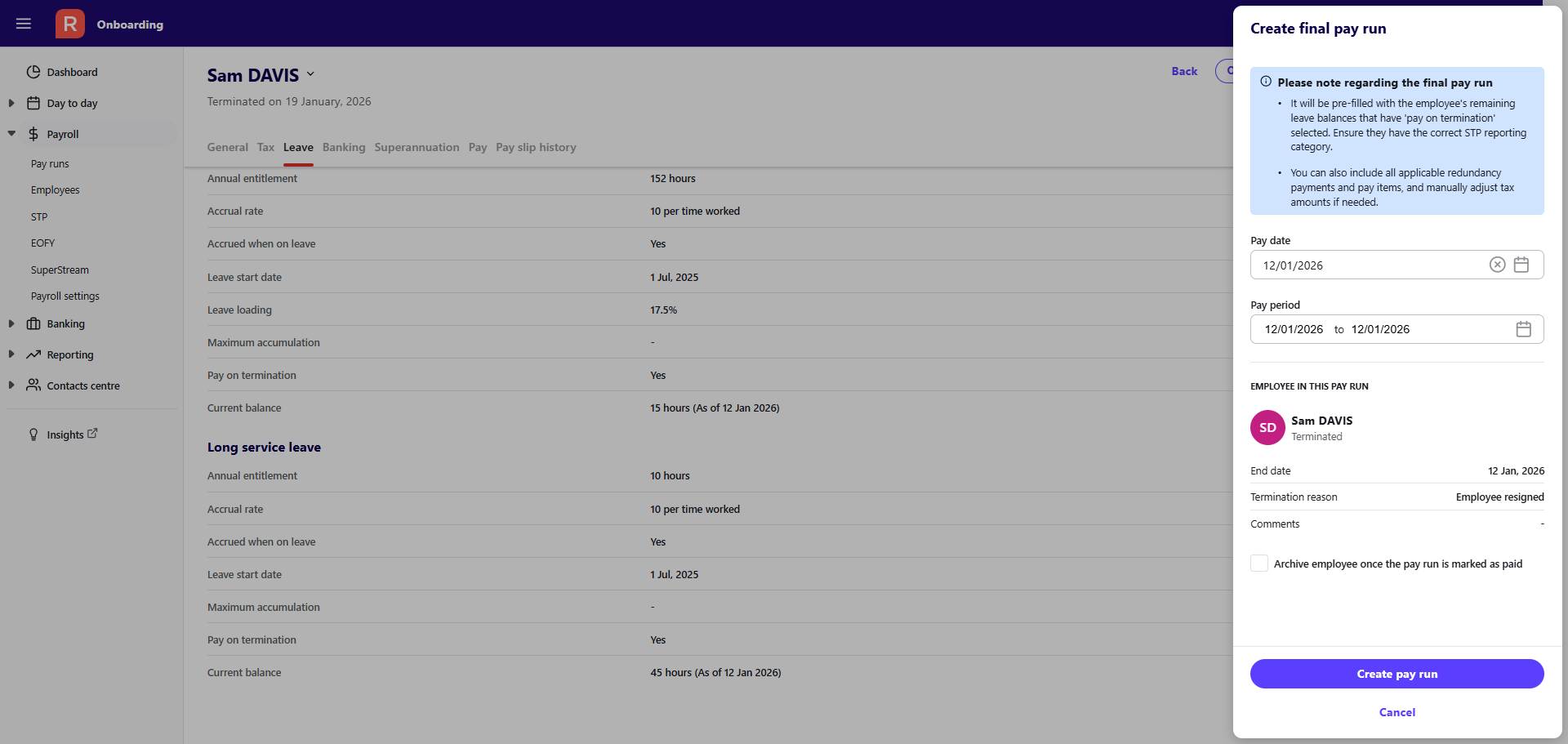 Create a final pay run