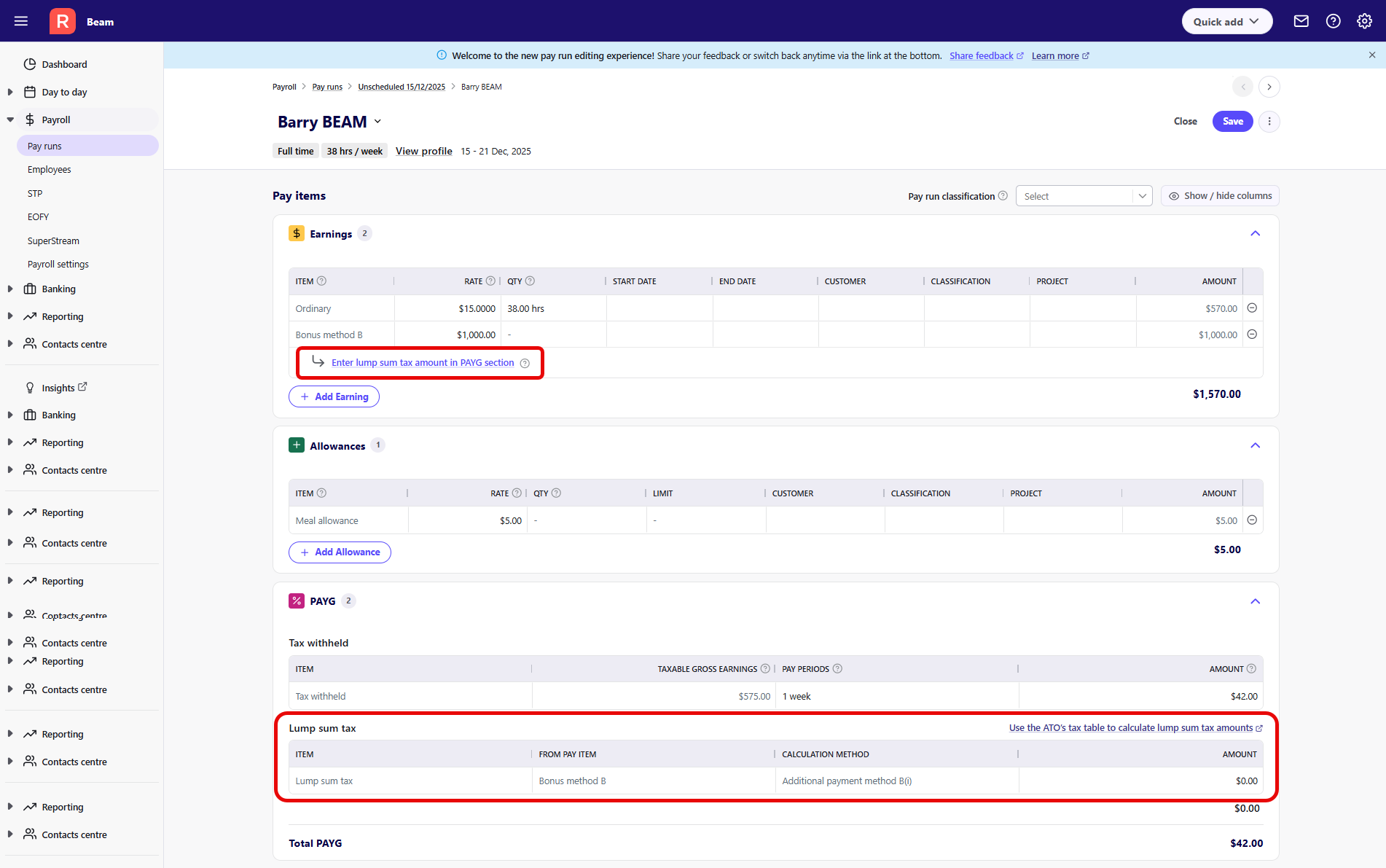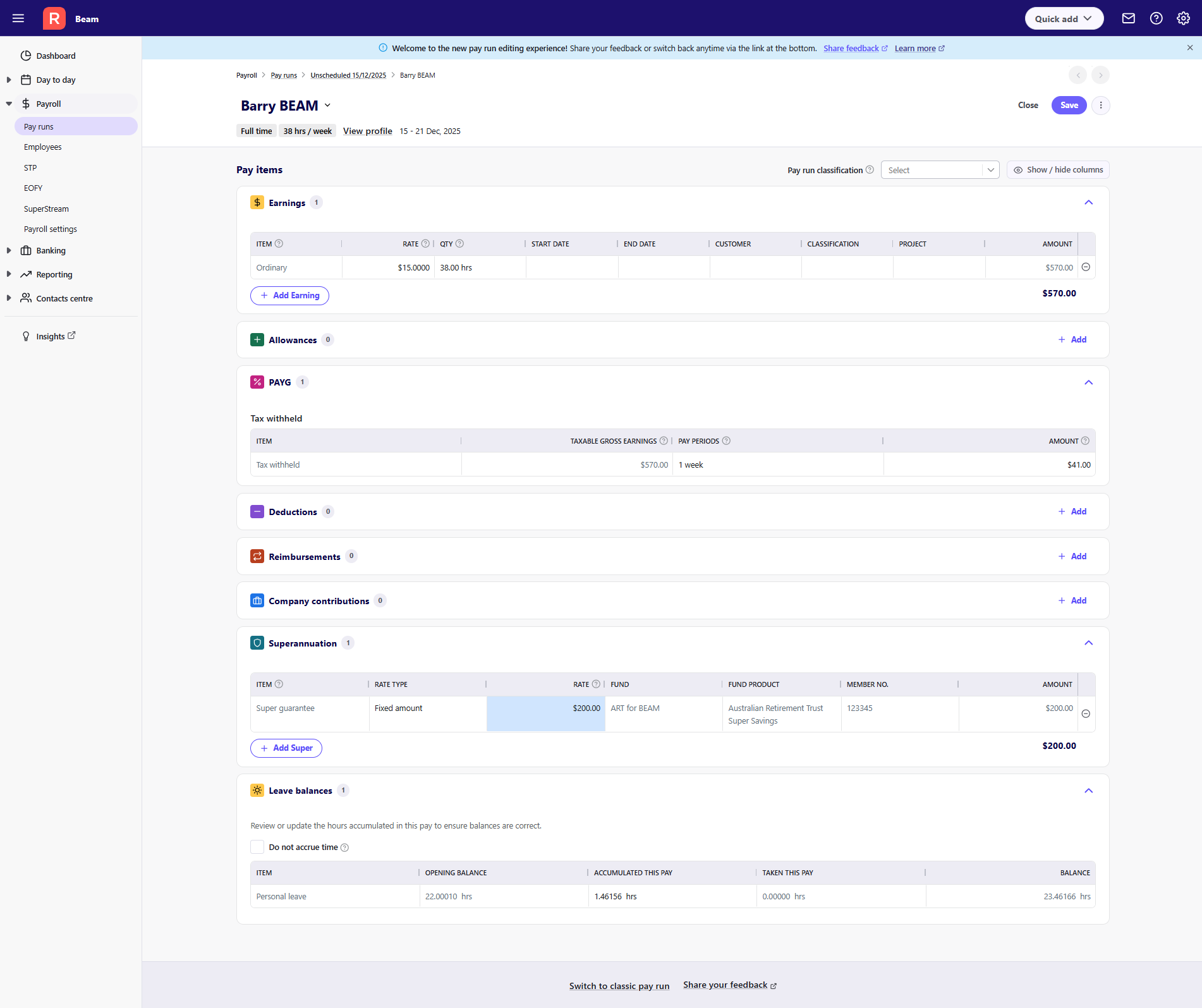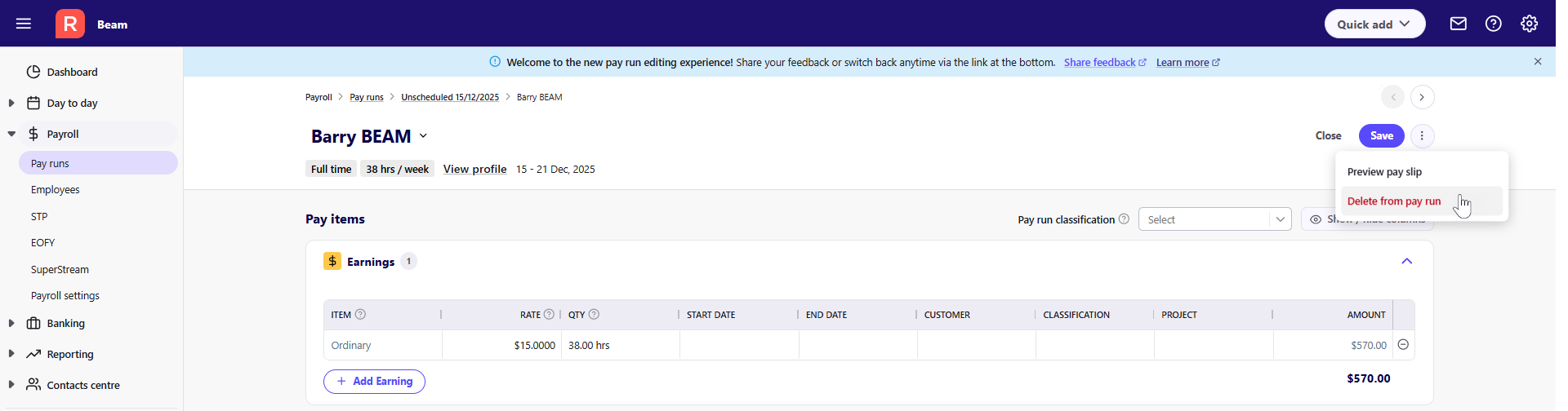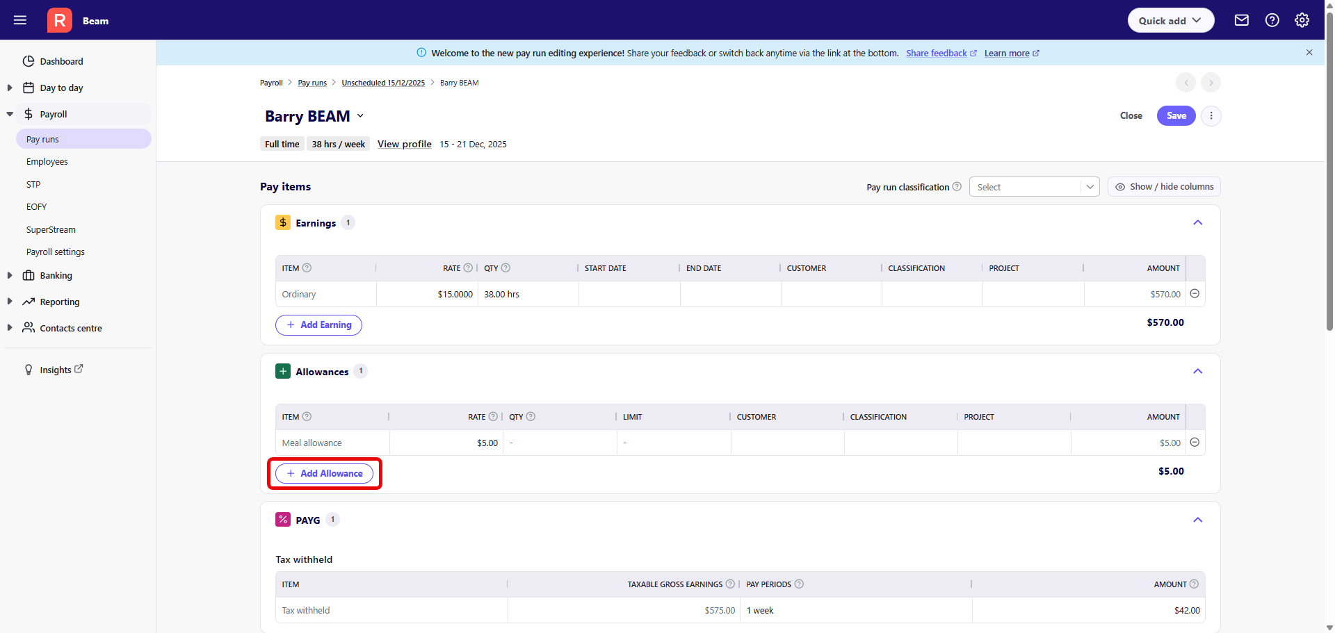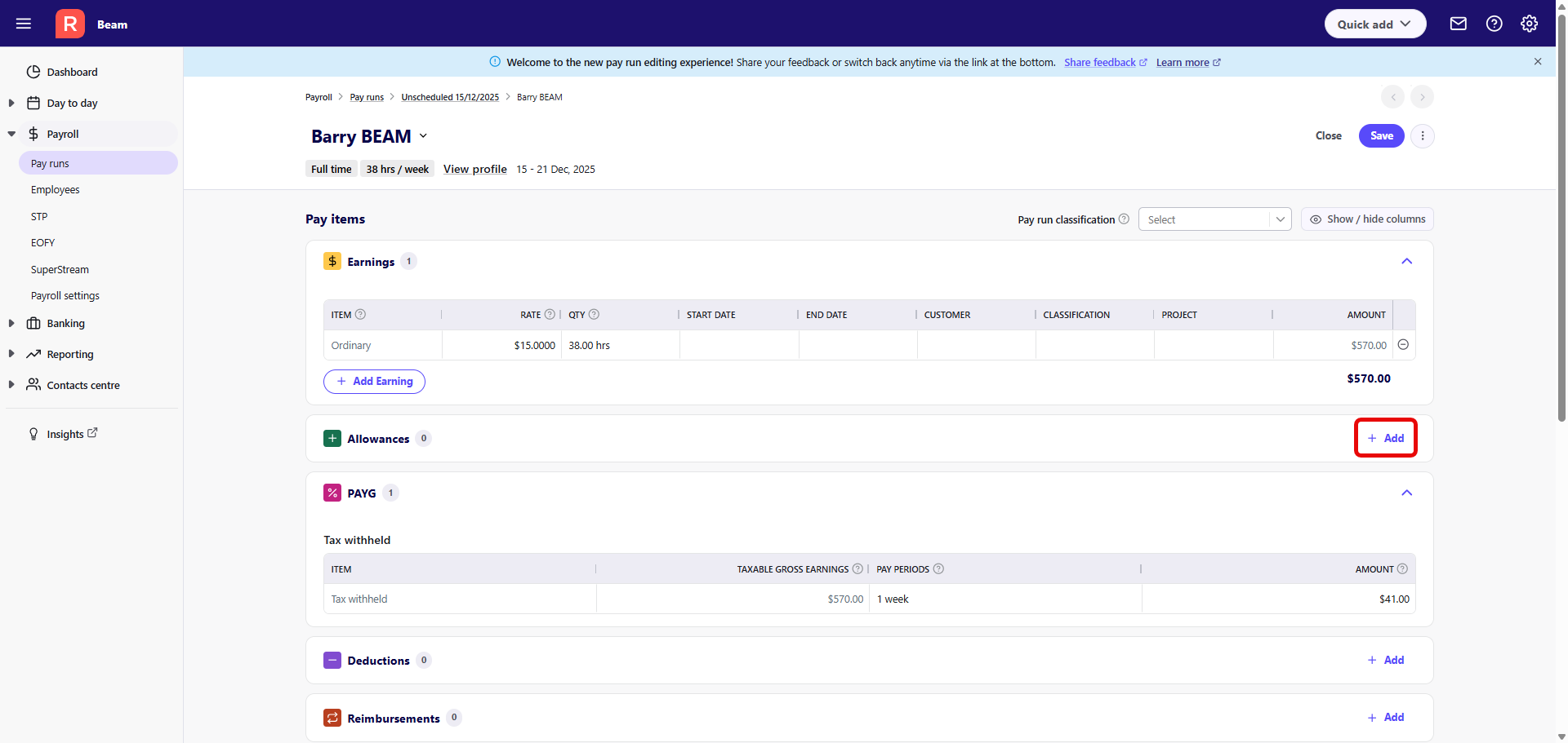 Edit an employee's pay in the new pay run editing experience in Reckon One