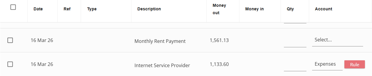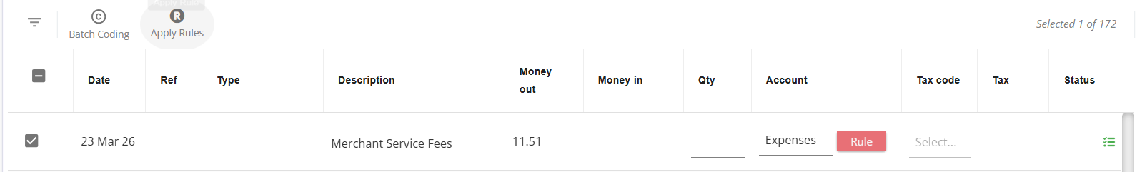 Transaction rules created in the Transaction rules and Bank transactions screens in Reckon One can be applied in Fast coding.